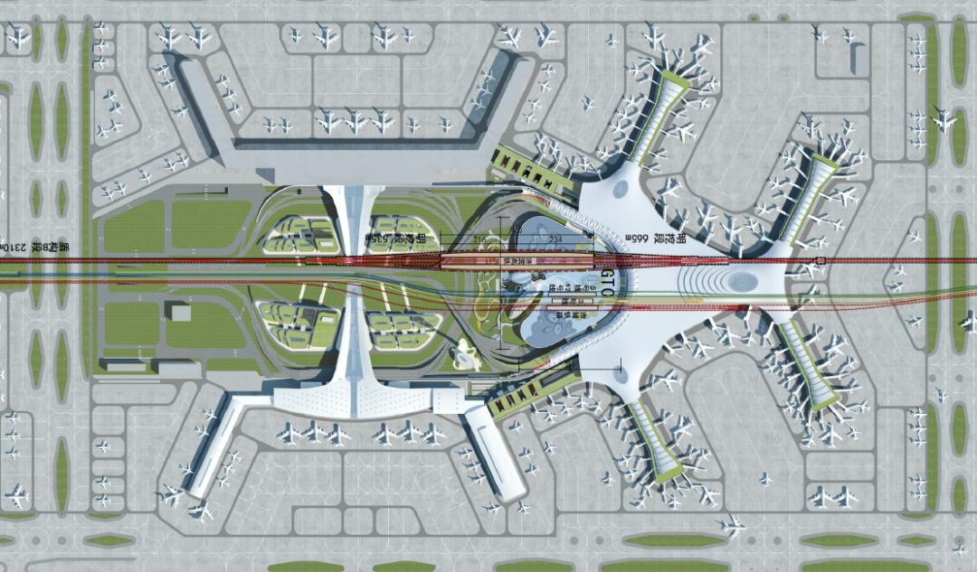 遥墙机场站与机场综合交通换乘中心、地铁车站为一体化结构共柱设计。项目主体为地下2层建筑,与济滨高铁、多条地铁接驳,车站长453.6米,宽63.3米,建筑结构深入地下21米,土方开挖量达64.6万立方米,是省内规模最大明挖地下高铁车站基坑,相当于在遥墙机场下方建设一座“地下城”。